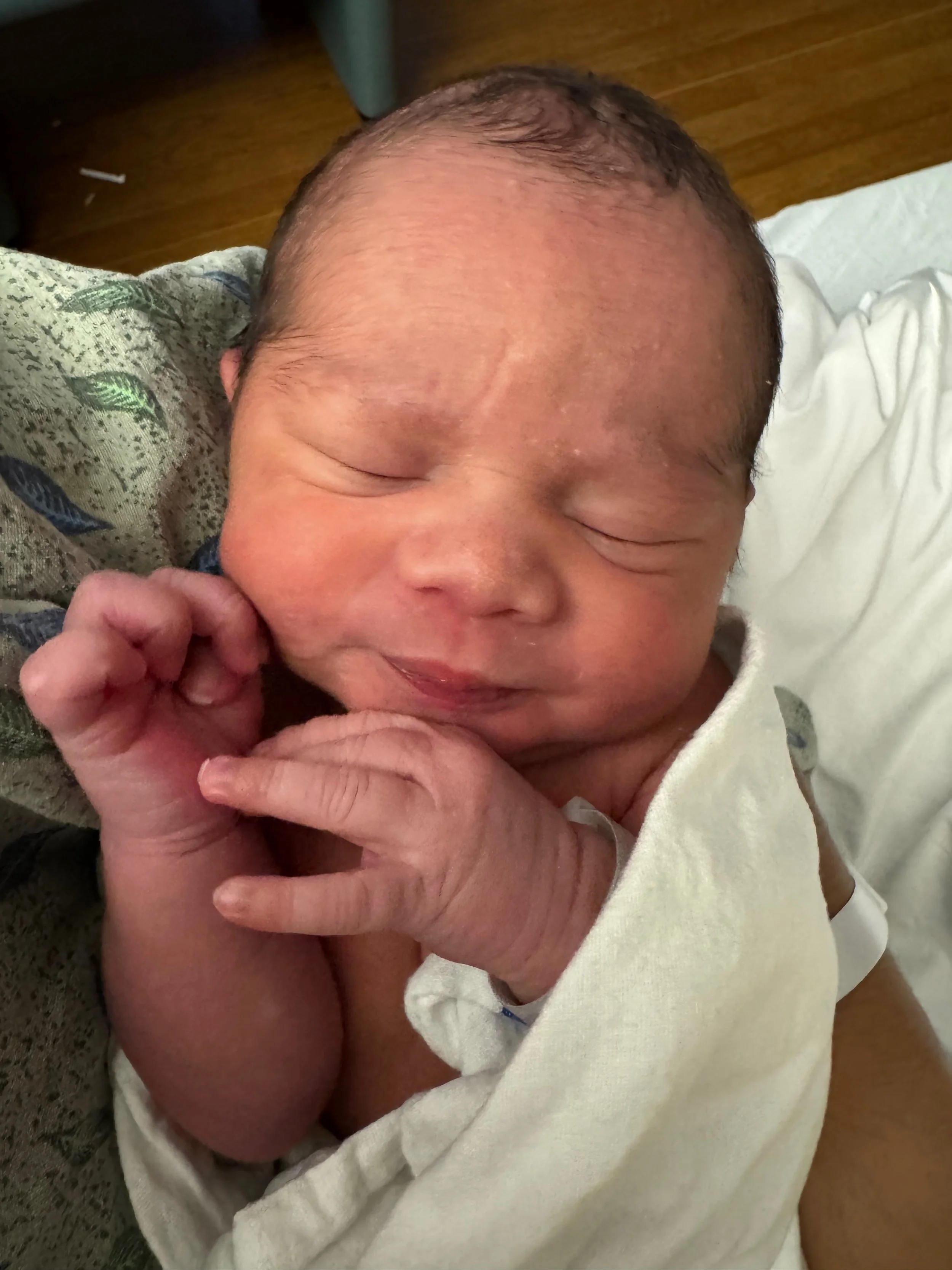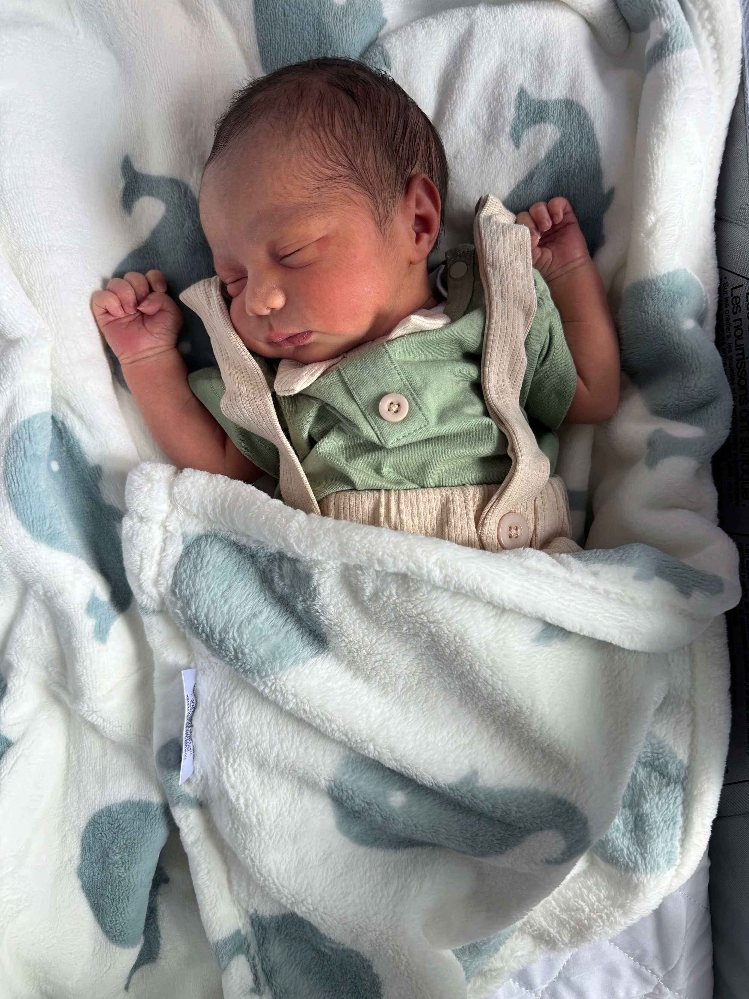 El pequeño AJ nació el 30 de julio, sano y fuerte. Mamá estuvo increíble y está terminando su recuperación de seis semanas.